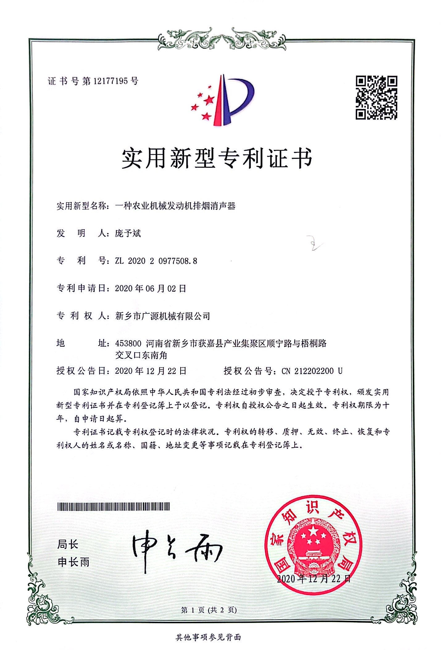 實(shí)用新型證書
